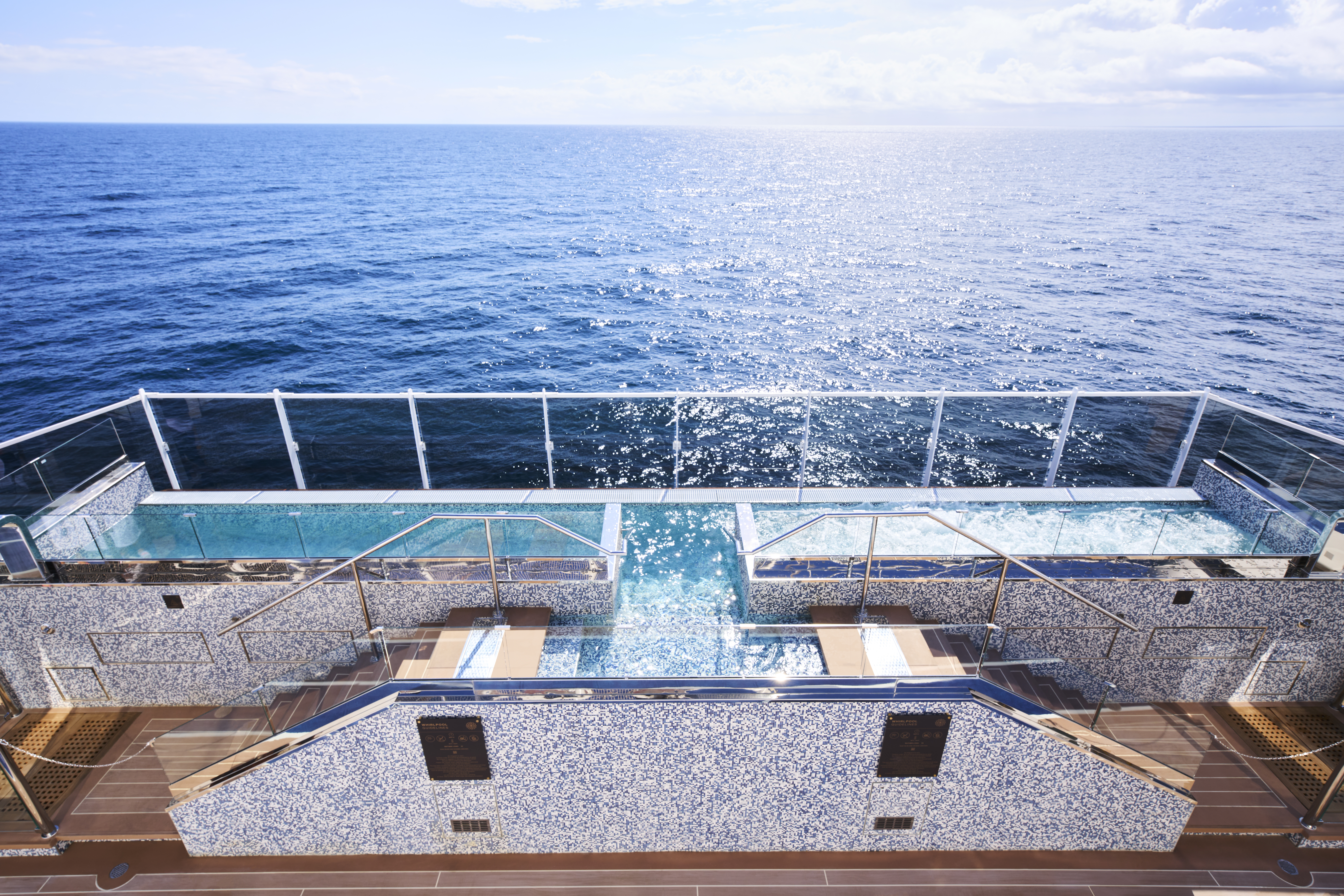 On board you will find multiple pools including indoor and infinity with tranquil solarium spaces to ensure a truly relaxing voyage. No queues, no crowded buffets, just seamless luxury.